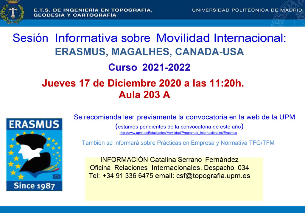 El jueves 17 y el lunes 21 (online) de diciembre 2020 realizamos unas reuniones sobre la próxima Convocatoria Múltiple de Movilidad Internacional para el curso 2021-22.